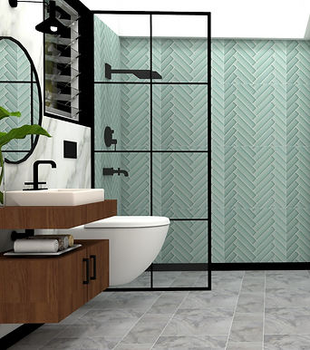 The bathroom designed has a clear circulation space for the wheelchair, anthropometry guidelines were followed, grab bars were provided at necessary locations to enable safety. The bathroom still looked premium and elegant.